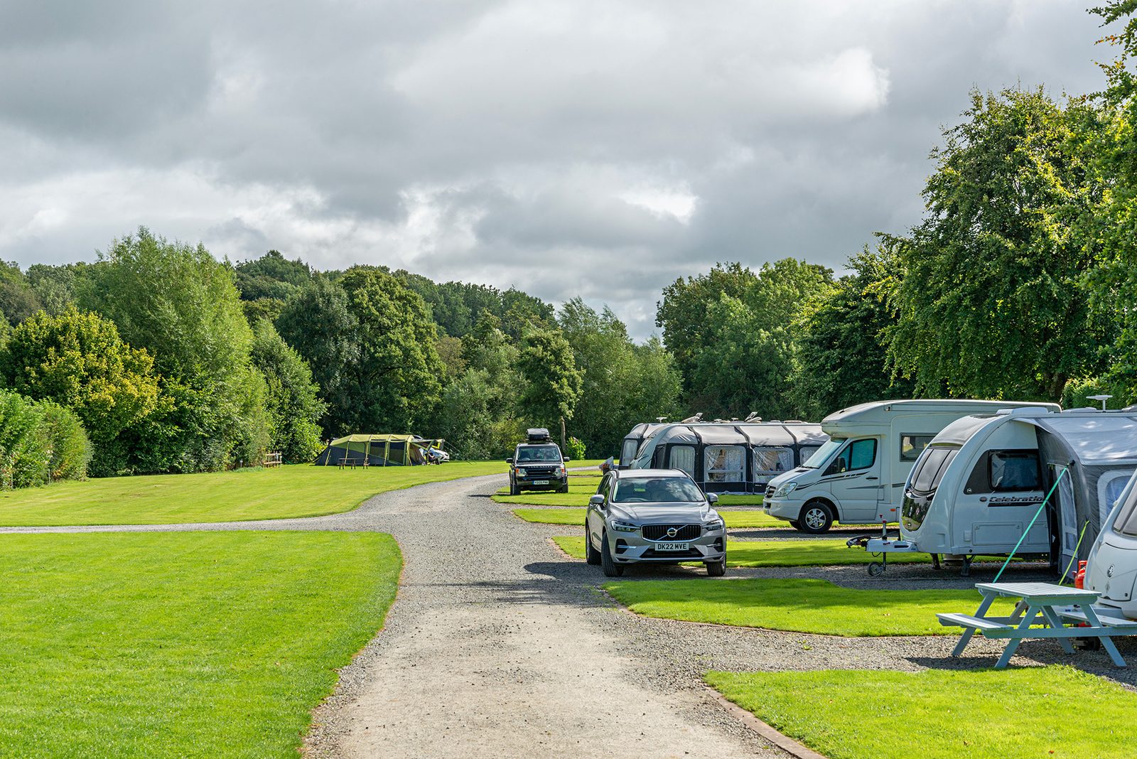 Our fully serviced pitches include 16-amp electric hook-up, drinking water, grey waste drainage, and a night light on the service bollard. For larger vehicles, three dedicated RV pitches are also available.